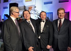 Рруководитель ФГУП "Почта России" Андрей Казьмин (в центре) на приеме-презентации "День банкира…