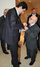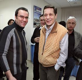 Чемпион мира по шахматам Владимир Крамник (слева) и историк Исаак Линдер (справа)во время…