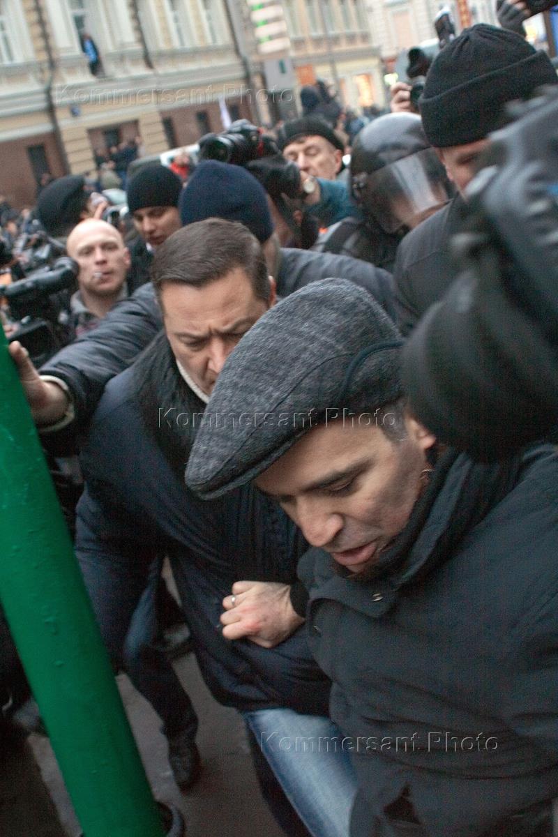 Лидер движения "Объединенный гражданский фронт" (ОГФ) Гарри Каспаров, арестованный в автобусе ОМОНа…