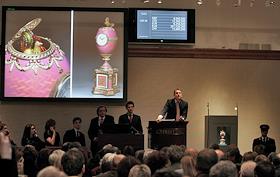 Торги во время недели русского искусства в аукционном доме "Christie's". Яйцо Фаберже из коллекции…