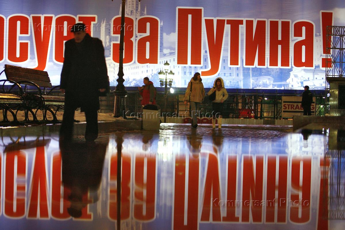 Рекламный предвыборный плакат партии "Единая Россия" на Тверской улице.