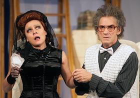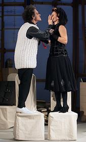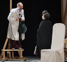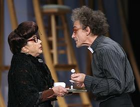 Актеры Валерий Гаркалин и Мария Голубкина во время прогона спектакля "Человек, зверь и добродетель"…