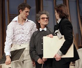 Прогон спектакля "Человек,зверь и добродетель" в театре Пушкина на основной сцене.