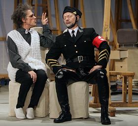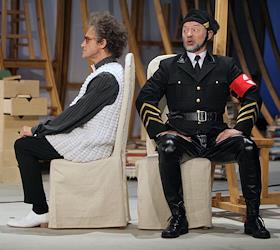 Актер Валерий Гаркалин (справа) во время прогона спектакля "Человек, зверь и добродетель" Луиджи…