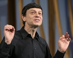 Режииссер Михаил Бычков на пресс-конференции перед прогоном спектакля "Человек, зверь и добродетель"…