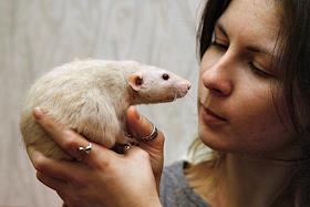 Заводчица домашних крыс Светлана Батова со своим питомцем.
