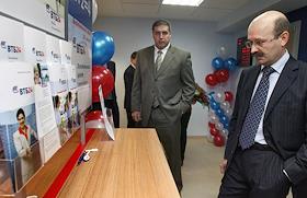 Президент - председатель правления ЗАО "Внешторгбанка Розничные услуги" Михаил Задорнов (справа) во…