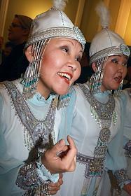 Девушки в национальных якутских костюмах перед началом встречи деловых кругов Республики Саха…