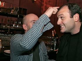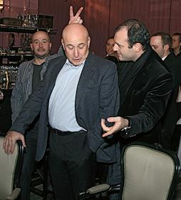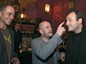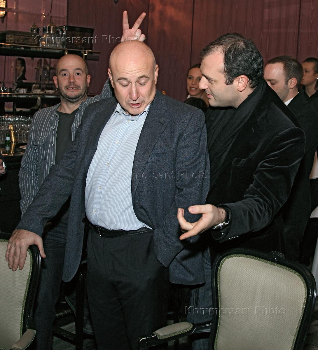Бизнесмен Ваге Енгибарян (справа) и британские художники, братья Чэпмены Динос (слева) и Джейк (в…
