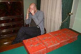 Британский художник Джейк Чэпмен на церемонии открытия своей выставки "Твой разум - это пожирающий…