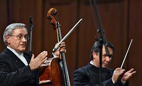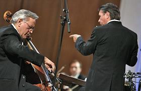 Пианист, композитор, дирижер Московской филармонии Михаил Плетнев (справа) и виолончелист Давид…