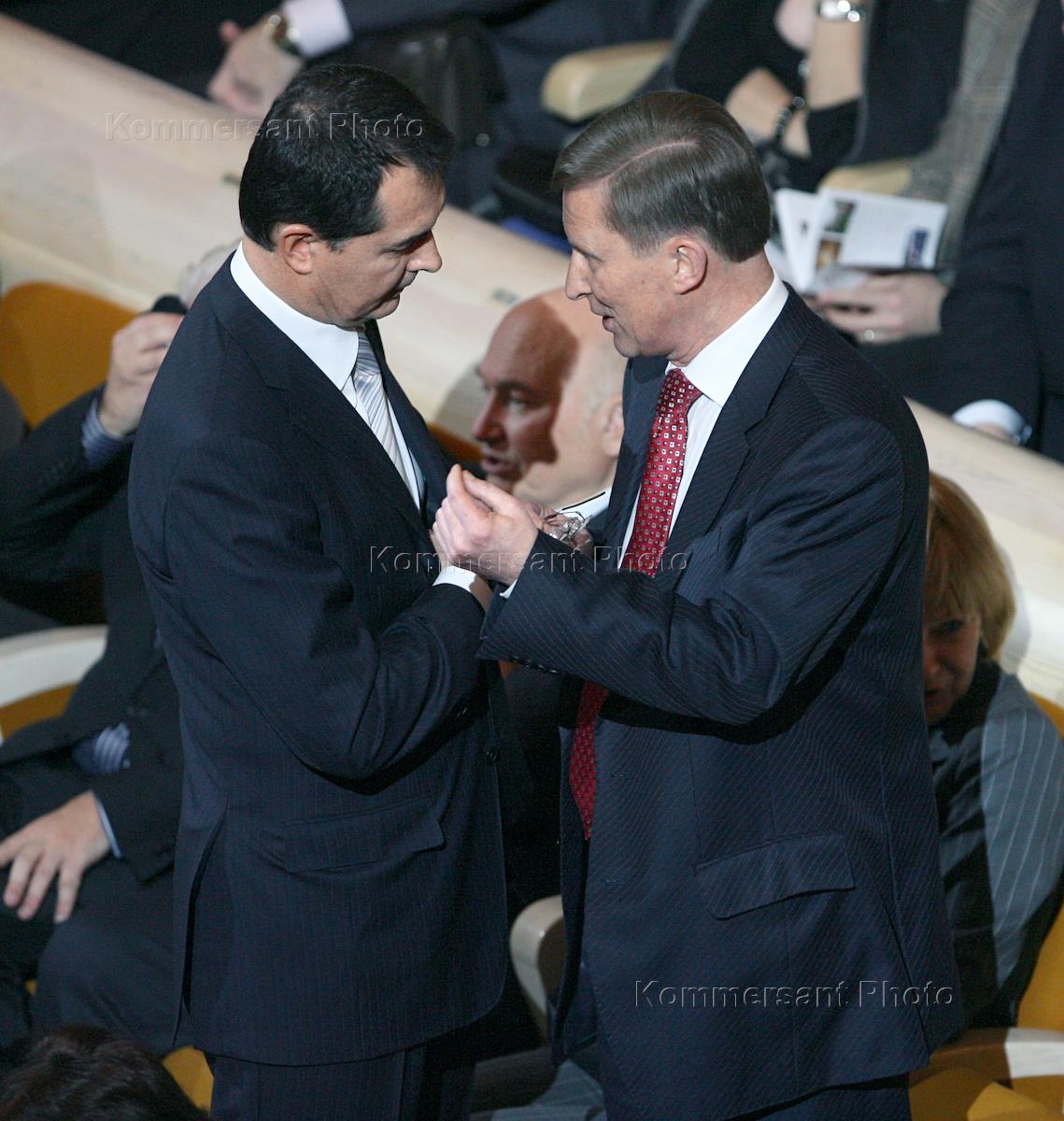Председатель Торгово-промышленной палаты России (ТПП РФ) Евгений Примаков (слева), певец Иосиф…