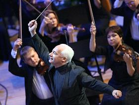 Президент Московского Международного Дома музыки (ММДМ), дирижер Владимир Спиваков (слева) и мэр…