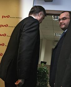 Президент ОАО "Российские железные дороги" (РЖД) Владимир Якунин (слева) и член правления, начальник…