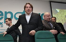 Генеральный директор телекомпании "Первый канал" Константин Эрнст (стоит) и режиссер Тимур…