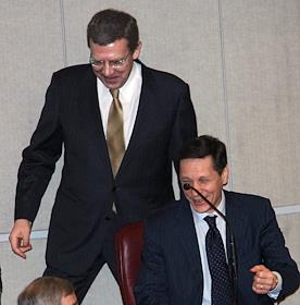 Депутаты Государственной Думы России от фракции "Единая Россия" Владимир Пехтин (слева) и Борис…