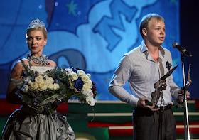 Актеры Анна Нестерцова (слева) и Михаил Трухин (справа) на торжественной церемонии вручения XII…