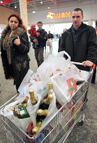 Покупатели во время предновогодних закупок в гипермаркете "Ашан".