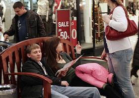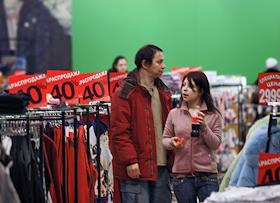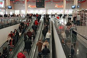 Покупатели в гипермаркете "МЕГА" "Белая Дача" во время новогодних распродаж.