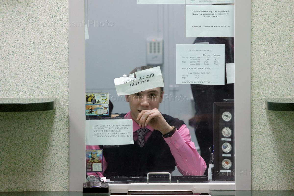 Операционная касса в одном из офисов Сберегательного банка (Сбербанка) России.