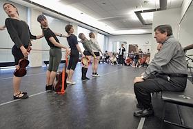 Репетиция балета "Фигаро" в постановке труппы "Кремлевского балета". Артисты балета в репетиционном…