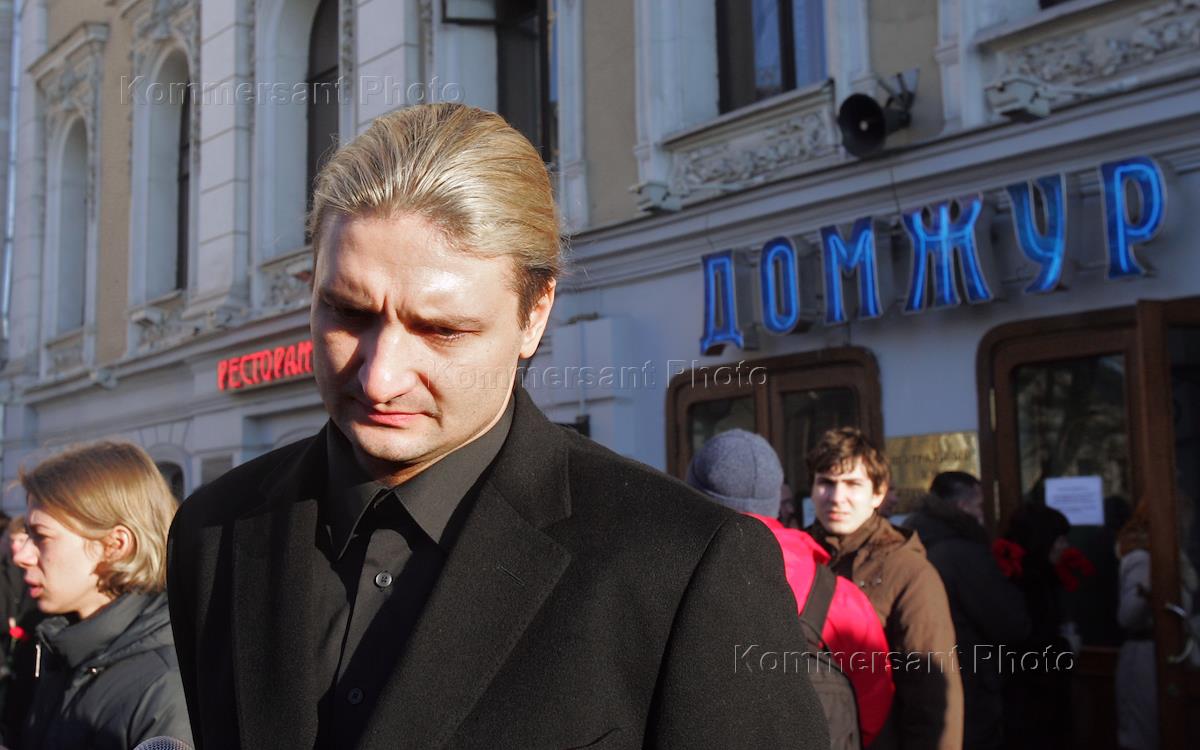 Актер Гоша Куценко на гражданской панихиде по теле- и радиоведущему Геннадию Бачинскому. Церемония…
