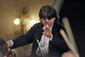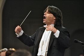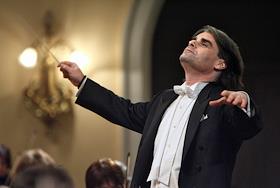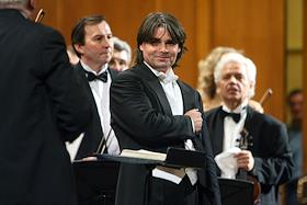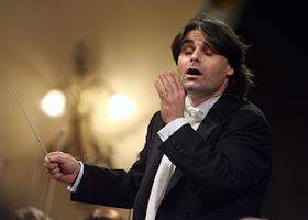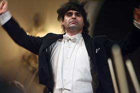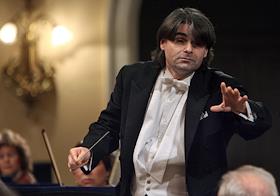 Дирижер Ион Марин (в центре) во время концерта Национального филармонического оркестра России.…