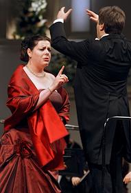 Дирижер Алессандро Витьелло (справа) и певица Даниэла Барчеллона (слева) во время выступления с…