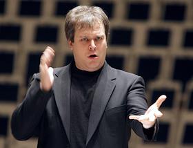 Дирижер Алессандро Витьелло во время выступления с Академическим симфоническим оркестром Московской…