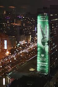 Реклама Сбербанка России "Жилищные кредиты" на улице города.