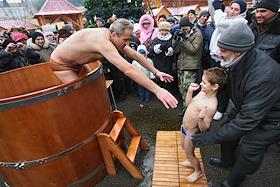 Завершение фестиваля ремесел "Русская зима". Крещенские купания на Площади Революции. Водосвятный молебен, купание в крещенской воде.