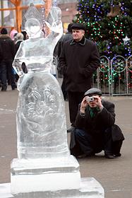 Завершение фестиваля - ярмарки ремесел "Русская зима". Ледяная скульптура на Площади Революции.