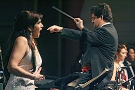 Американская оперная певица Синтия Макрис (в центре) и испанский дирижер Альберто Холд-Гарридо…