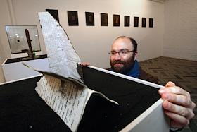 Израильский художник Хайм Сокол на открытии своей персональной выставки "Криптомнезия. Рецидив" в…