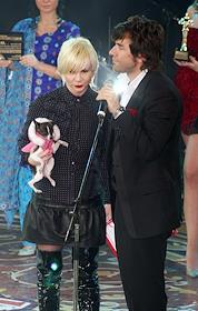 Дизайнер Надя Сказка (слева) и телеведущий Андрей Малахов (справа) на открытии выставки "MILLIONAIRE…