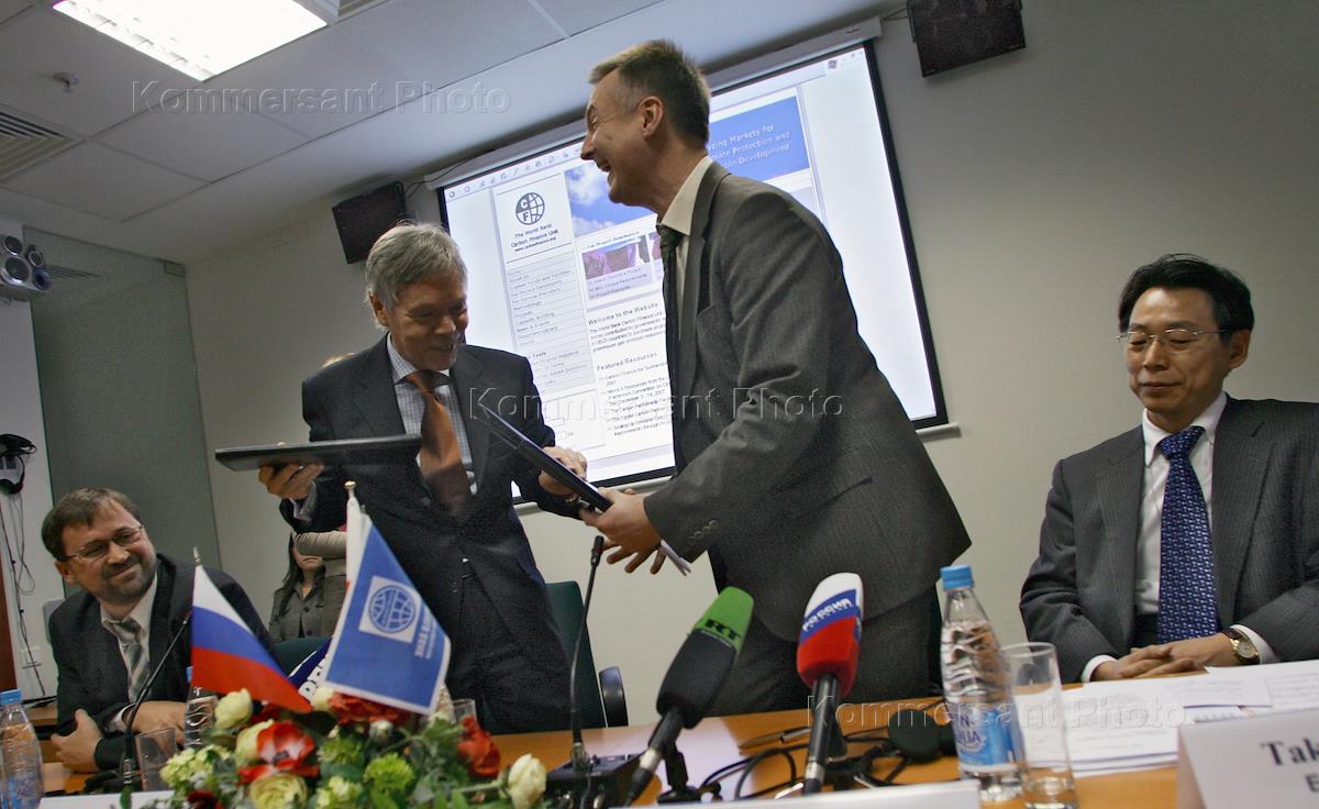 Экономика и бизнес П/к, посвященная подписанию соглашения о гранте между Всемирным банком и правительством РФ в Московском представительстве Всемирного банка.