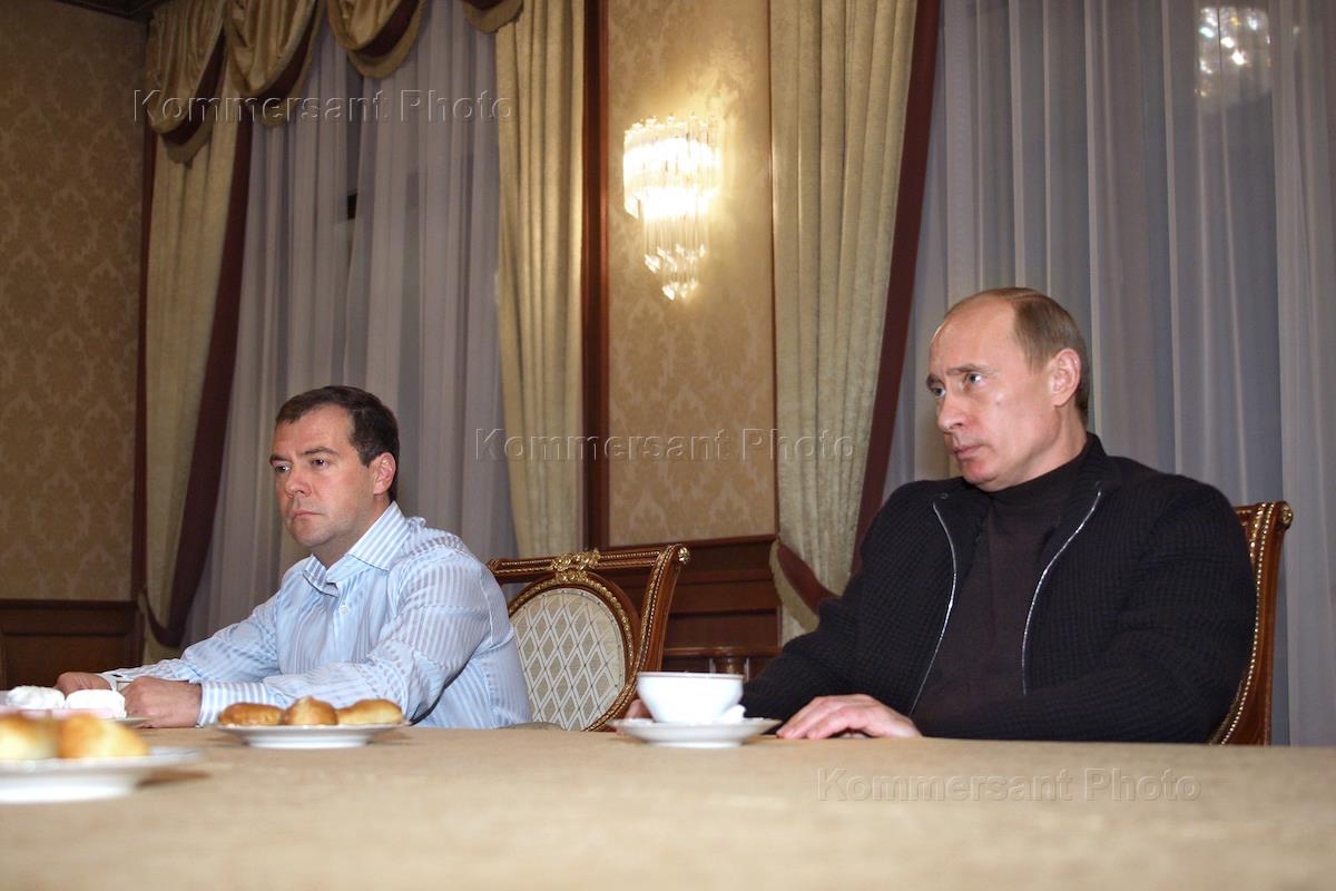 Председатель Правительства России Виктор Зубков (слева) и его первый заместитель Дмитрий Медведев…