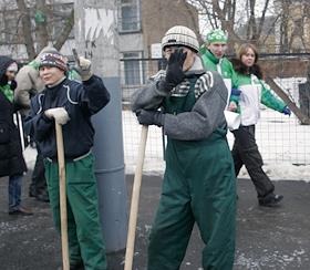 Лидер Движения молодых политических экологов Подмосковья "Местные" Сергей Фатеев (справа) во время…