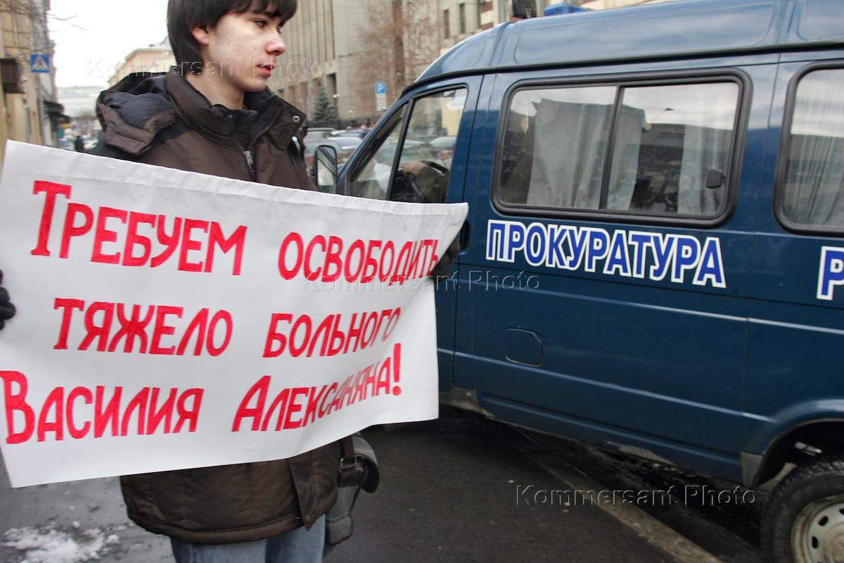 Одиночный пикет, посвященный Василию Алексаняну, около здания Генеральной Прокуратуры России.