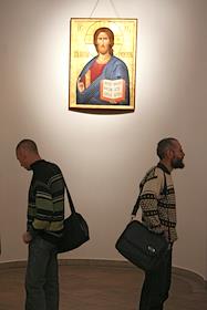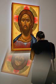 Посетитель на церемонии открытия выставки "В поисках невидимого царства" в театре "Школа…