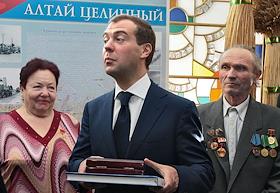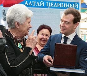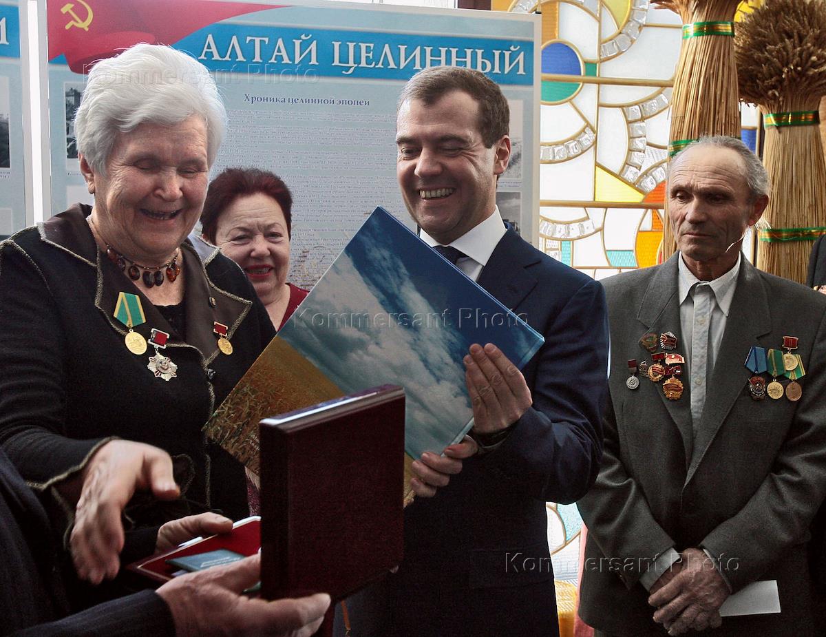 Экономика и бизнес Визит Дмитрия Медведева в Барнаул. Осмотр выставки продукции предприятий Алтайского края. Встреча с первоцелинниками. Всероссийский сельский сход.