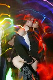 Студенческая акция "Ночь поцелуев" в ночном клубе "Матрица". Парочка целующихся.