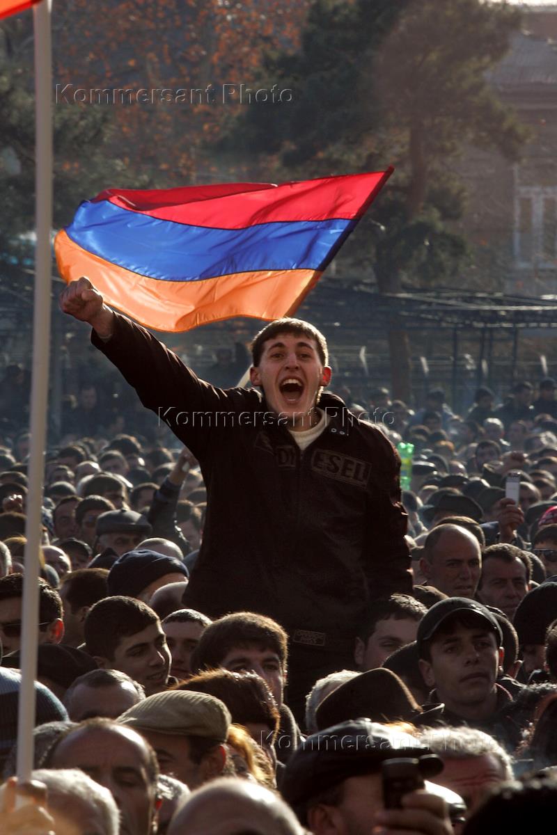 Участники предвыборных митингов кандидатов в президенты Армении.