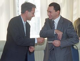 Президент нефтяной компании "Сибур" Яков Голдовский (справа) на совместном брифинге своей компании и…