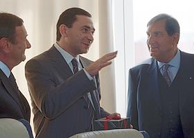 Президент нефтяной компании "Сибур" Яков Голдовский (в центре) на совместном брифинге своей компании…