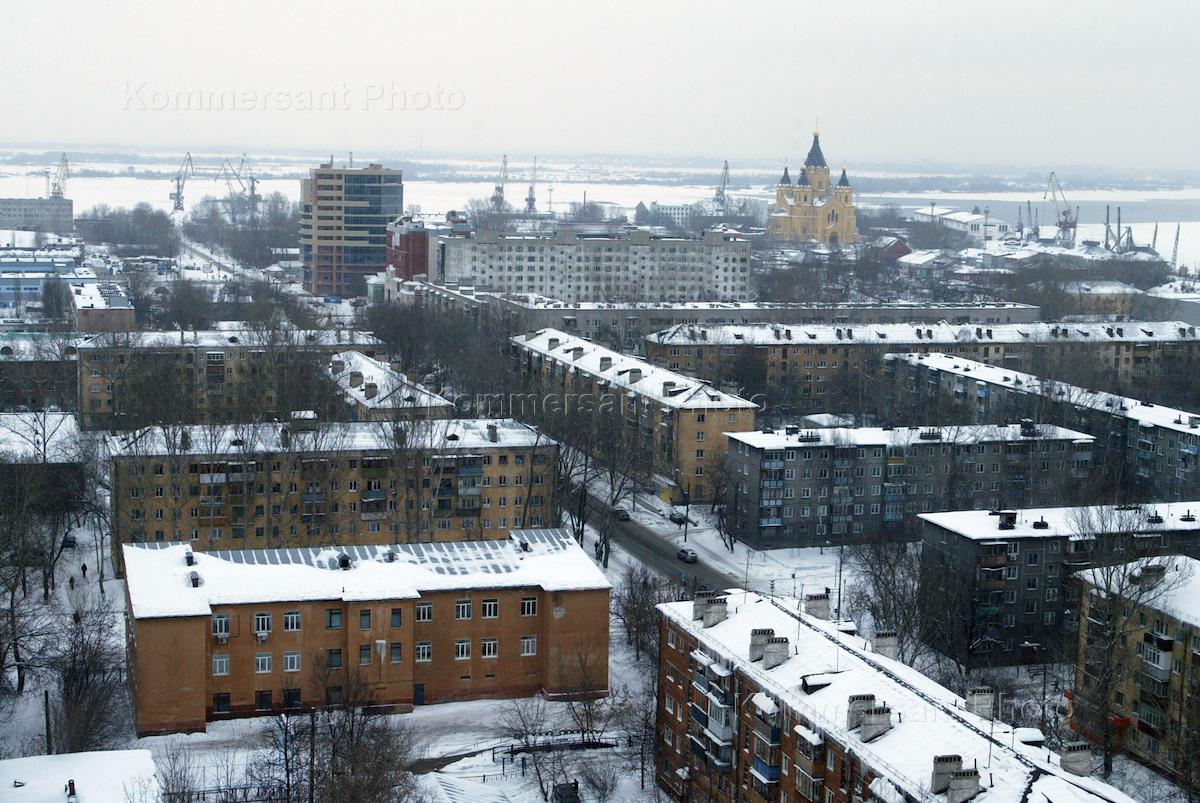 Виды города с крыши высотного дома. Жилые кварталы Канавинского района и храм Александра Невского на…
