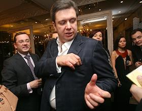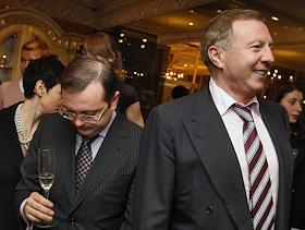 Генеральный директор "РосБизнесКонсалтинг" (РБК) Юрий Ровенский (слева) на церемонии открытия бутика…