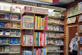 Полки с книгами в отделе "Дошкольное обучение" в Торговом Доме "Библио-глобус" на Мясницкой улице.