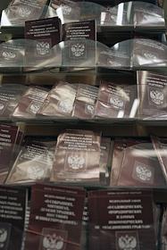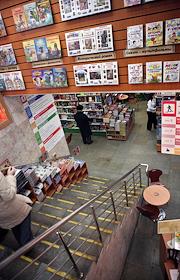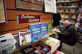 Полки с книгами в Торговом Доме "Библио-глобус" на Мясницкой улице.