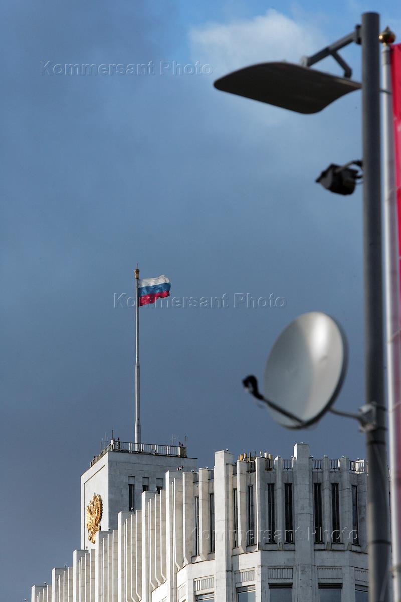 Российский флаг на здании Дома Правительства Российской Федерации (Белый Дом).